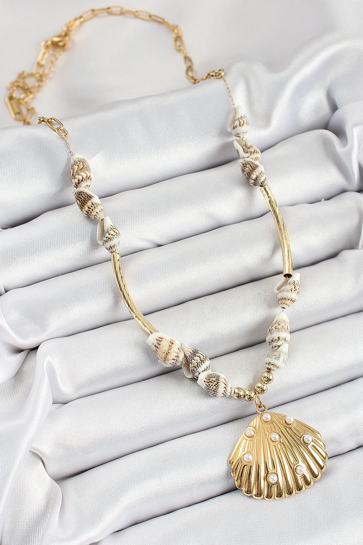 Erb 316L Çelik Gold Renk Deniz Kabuğu Modelli Kadın Kolye