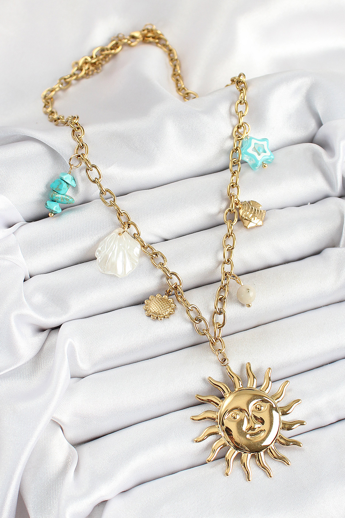 Erb 316L Çelik Gold Renk Güneş Ve Deniz Kabukları Konsept Kadın Kolye