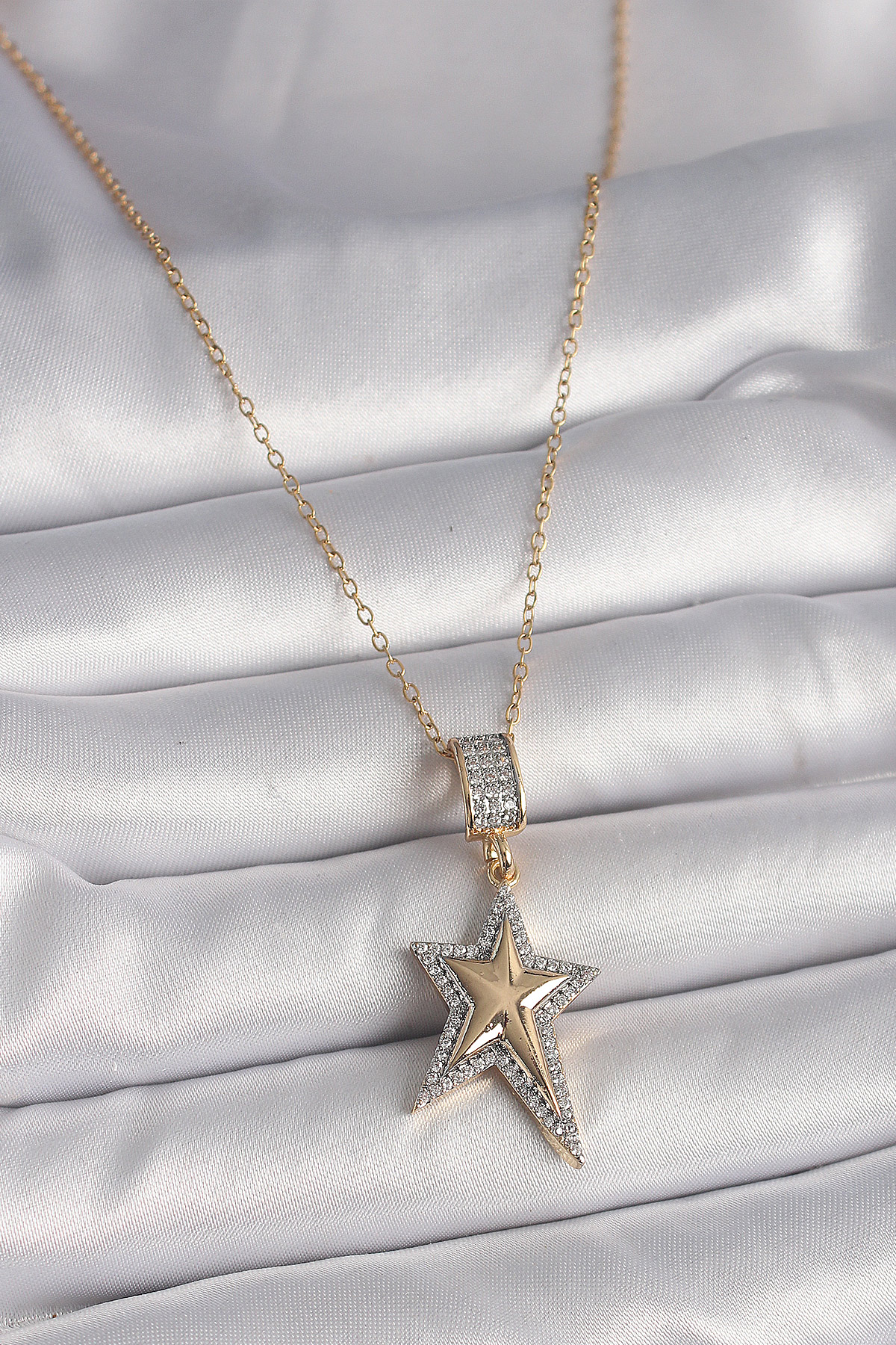 Erb 316L Çelik Gold Renk Zincir Zirkon Taşlı Yıldız Model Kadın Kolye