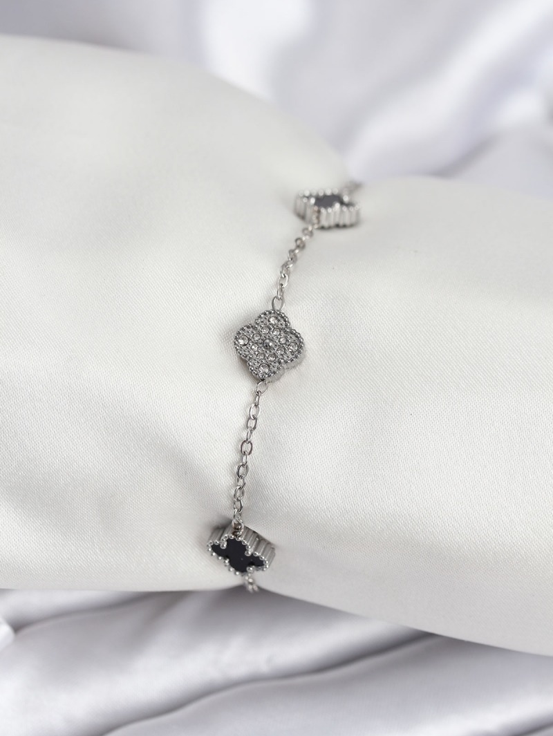 Erb 316L Çelik Gümüş Renk Siyah Ve Zirkon Taşlı Baby Boy Yonca Kadın Bileklik
