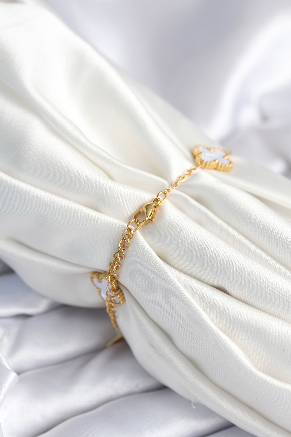 Erb 316L Çelik Zincir Zirkon Taşlı Yonca Beyaz Kadın Bileklik