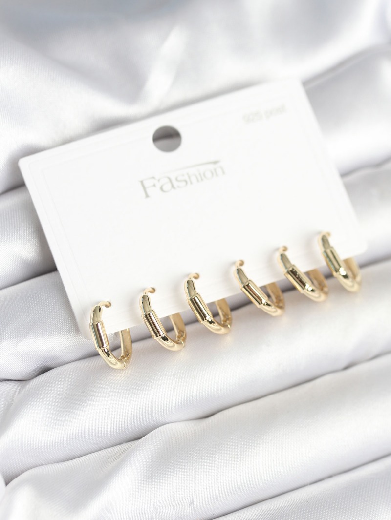 Erb Gold Renk Pirinç Halka Model 925 Ayar Gümüş Çivili Kadın Küpe Seti