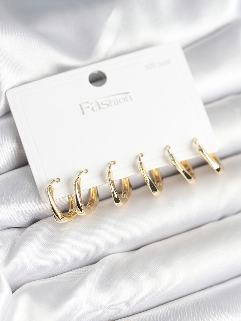 Erb Gold Renk Pirinç Kare Halka Model 925 Ayar Gümüş Çivili Kadın Küpe Seti