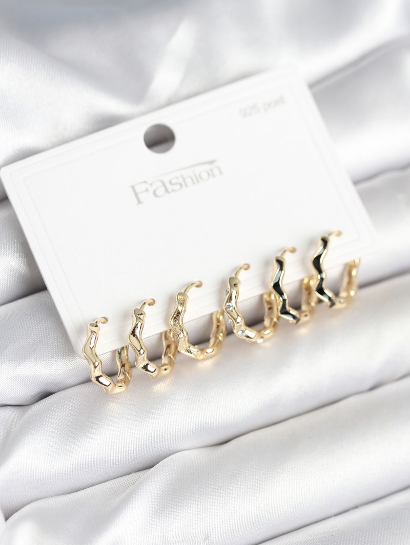 Erb Gold Renk Pirinç Zikzak Model 925 Ayar Gümüş Çivili Kadın Küpe Seti