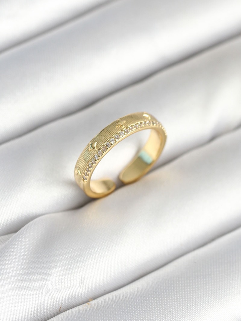 Erb Gold Renk Şerit Zirkon Taşlı Kadın Yüzük