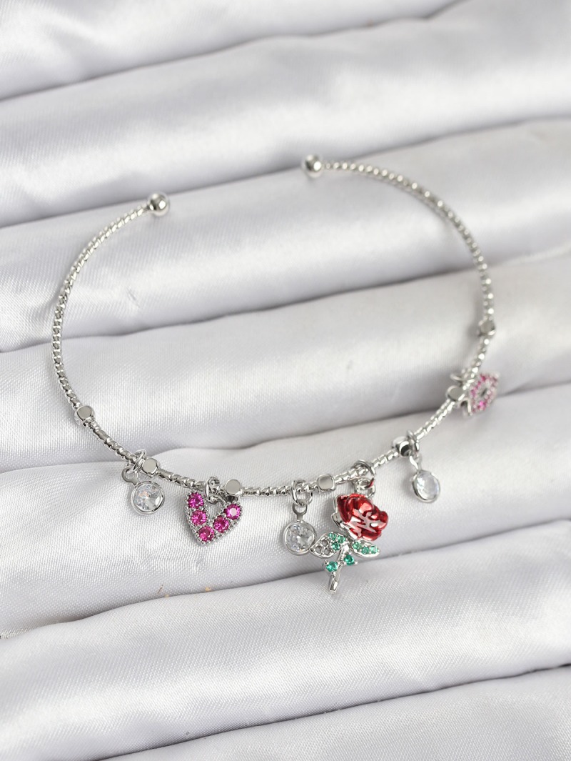 Erb Gül Charmlı Gümüş Renk Pirinç Kadın Bileklik
