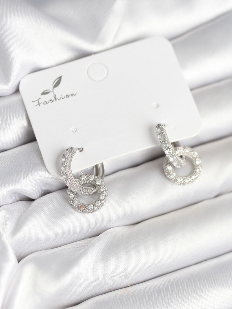 Erb Gümüş Renk Pirinç Zirkon Taşlı Halka Model Kadın Küpe