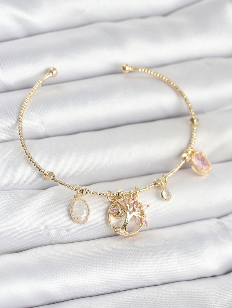Erb Hayat Ağacı Charmlı Gold Renk Pirinç Kadın Bileklik