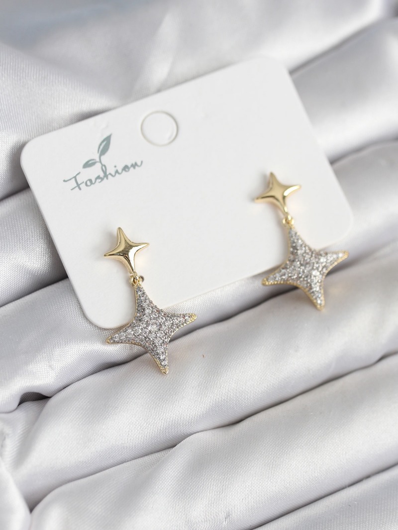 Erb Kutup Yıldızı Pirinç Gold Renk Zirkon Taşlı Kadın Küpe