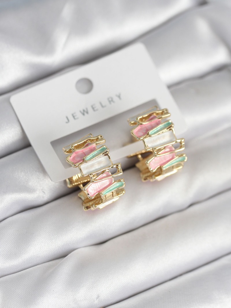 Erb Mineli Karışık Renkli Gold Pirinç Kadın Küpe