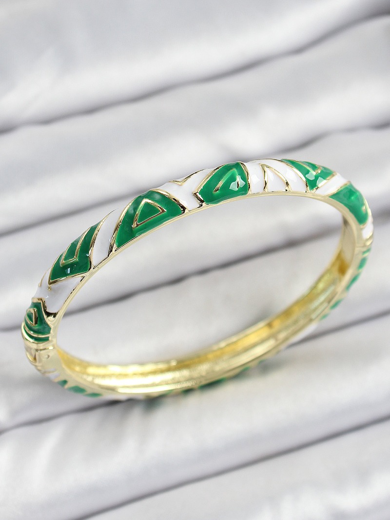 Erb Mineli Pirinç Yeşil Beyaz Motifli Kadın Kelepçe