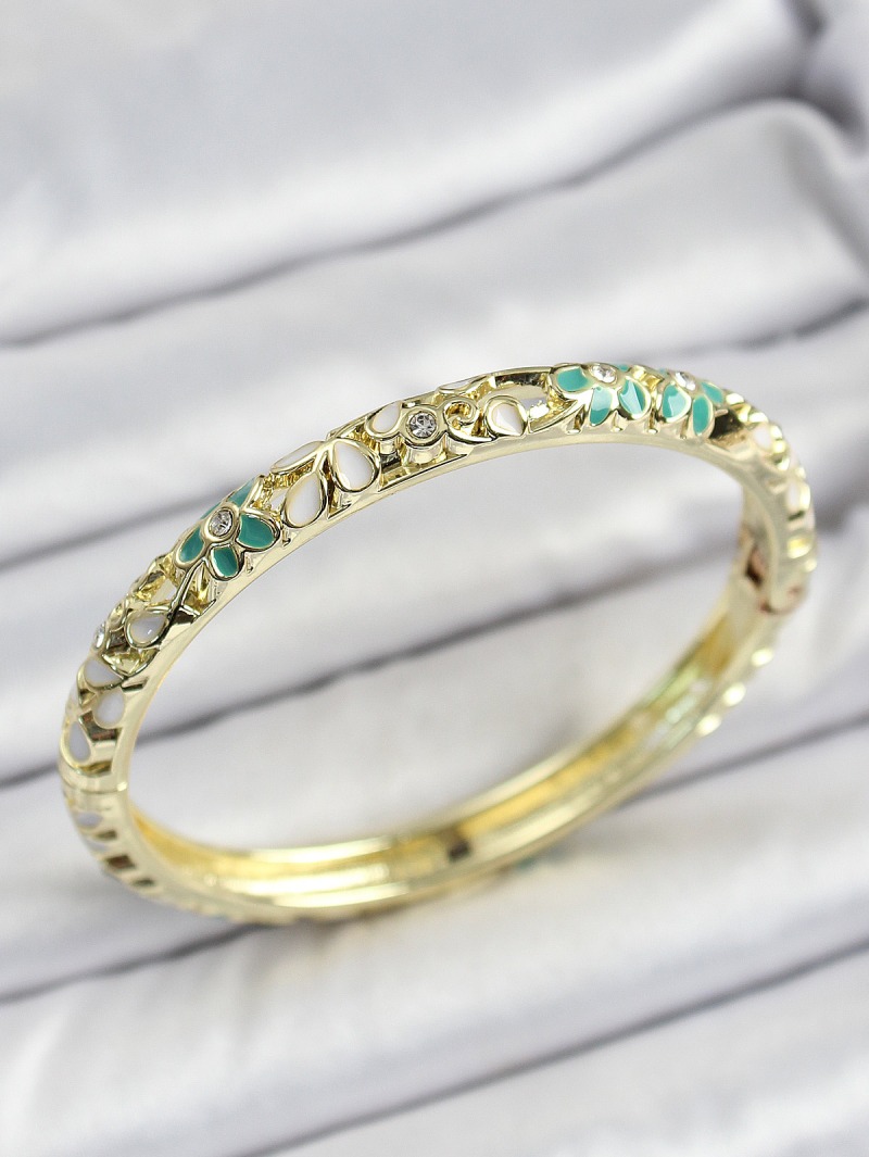 Erb Mineli Pirinç Yeşil Çiçek Desen Motifli Kadın Kelepçe