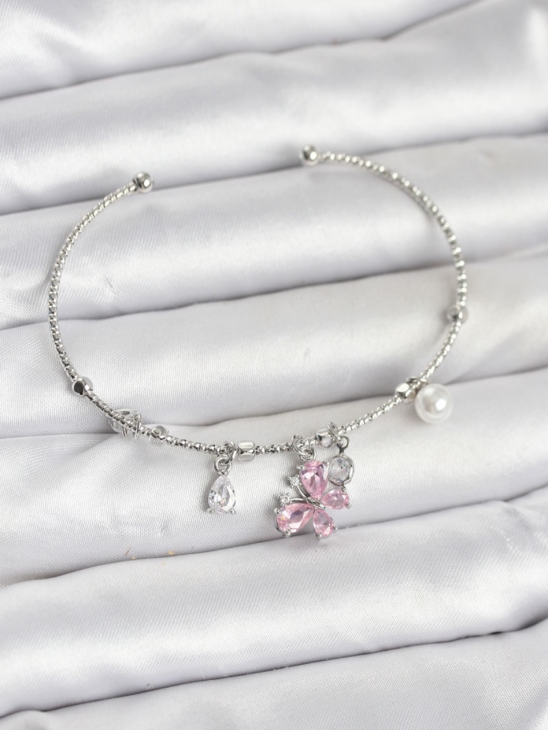 Erb Pembe Kelebek Charmlı Gümüş Renk Kadın Bileklik