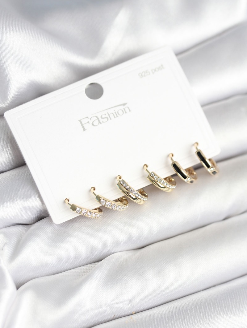 Erb Pirinç Gold Renk 925 Ayar Gümüş Çivi Kadın Küpe Seti