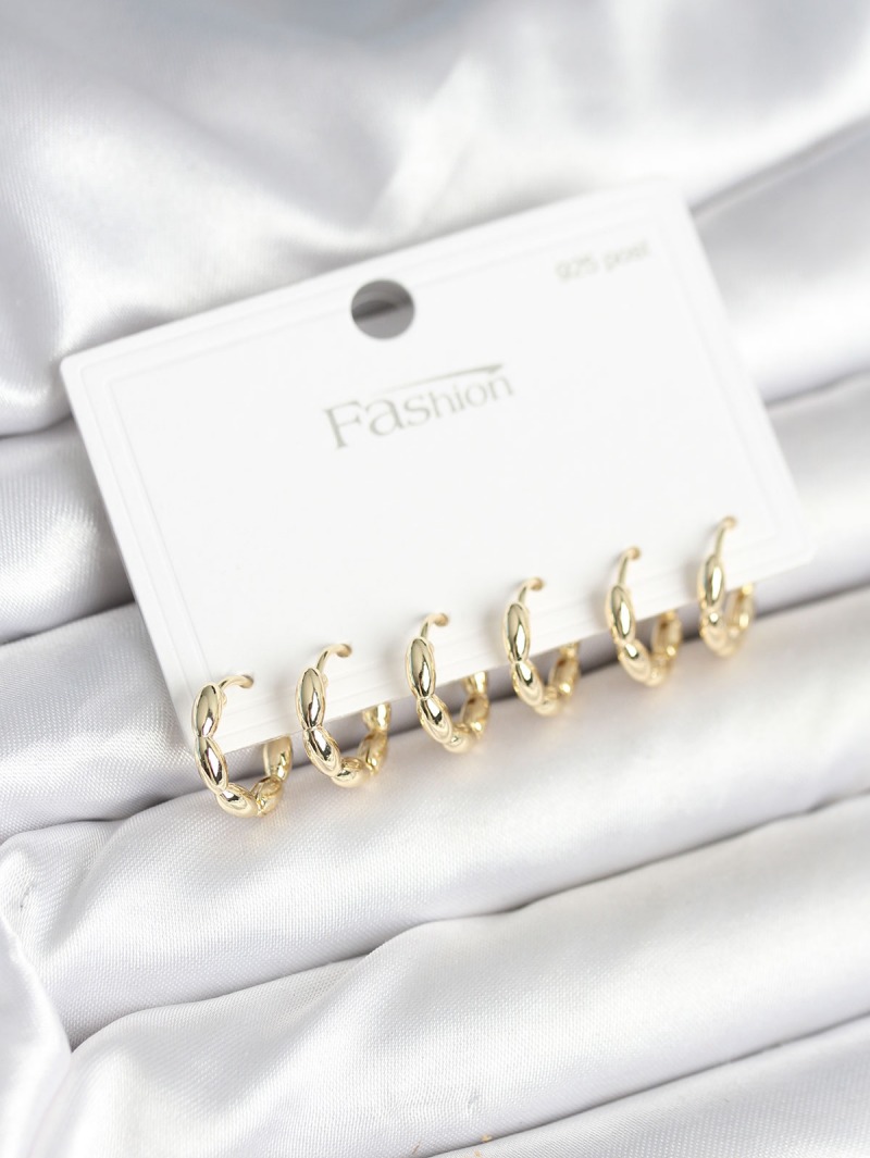 Erb Pirinç Gold Renk Baklalı Halka 925 Gümüş Çivi Kadın Küpe Seti