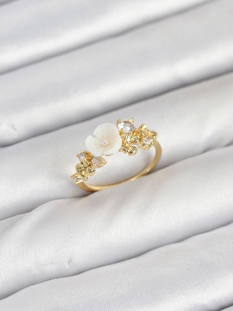 Erb Pirinç Gold Renk Çiçek Model Zirkon Taşlı Kadın Yüzük