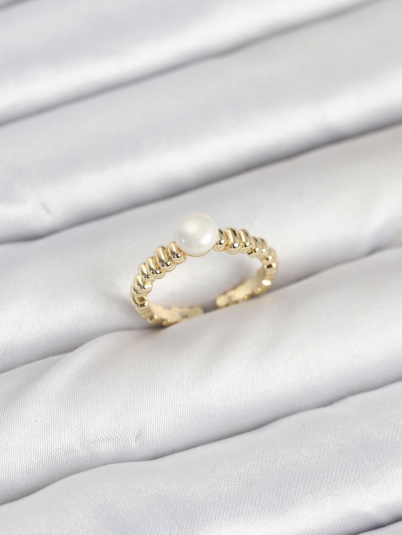 Erb Pirinç Gold Renk Göbek İnci Model Kadın Yüzük