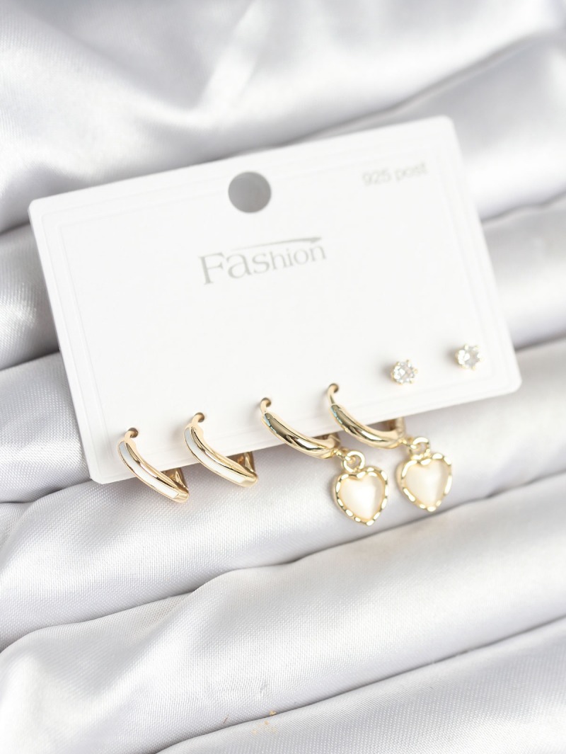 Erb Pirinç Gold Renk Kalp Detaylı 925 Ayar Gümüş Çivili Kadın Küpe Seti