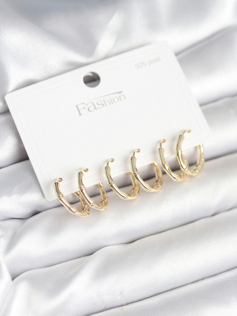 Erb Pirinç Gold Renk Kemik Halka Model 925 Ayar Gümüş Çivili Kadın Küpe Seti