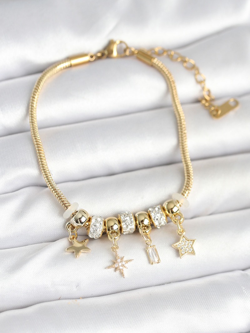 Erb Pirinç Gold Renk Kutup Yıldızı Charmlı Kadın Bileklik