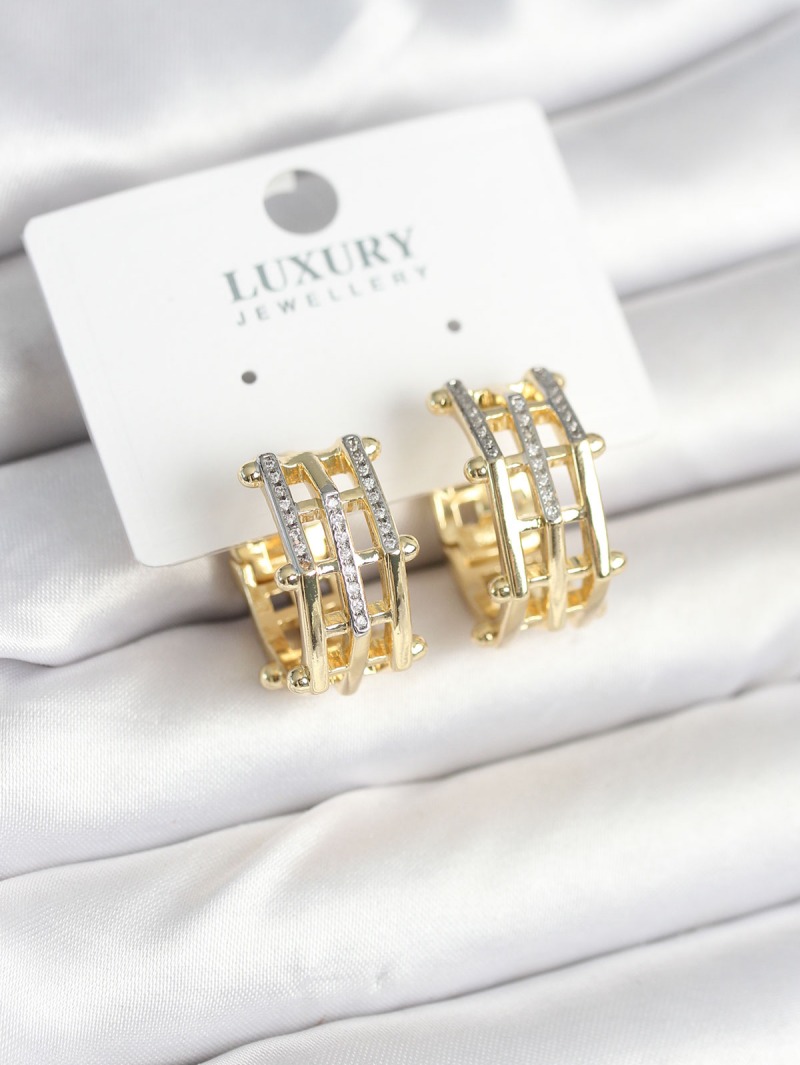 Erb Pirinç Gold Renk Taşlı Halka Kadın Küpe