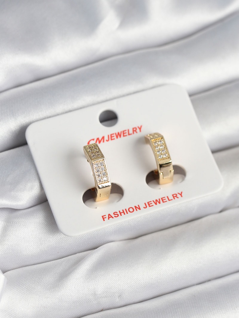 Erb Pirinç Gold Renk Zirkon Taşlı Altıgen Kadın Küpe