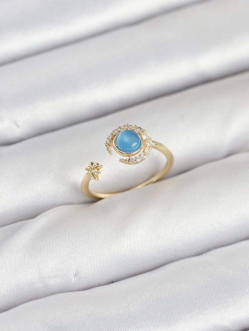 Erb Pirinç Gold Renk Zirkon Taşlı Ay Yıldız Kadın Yüzük