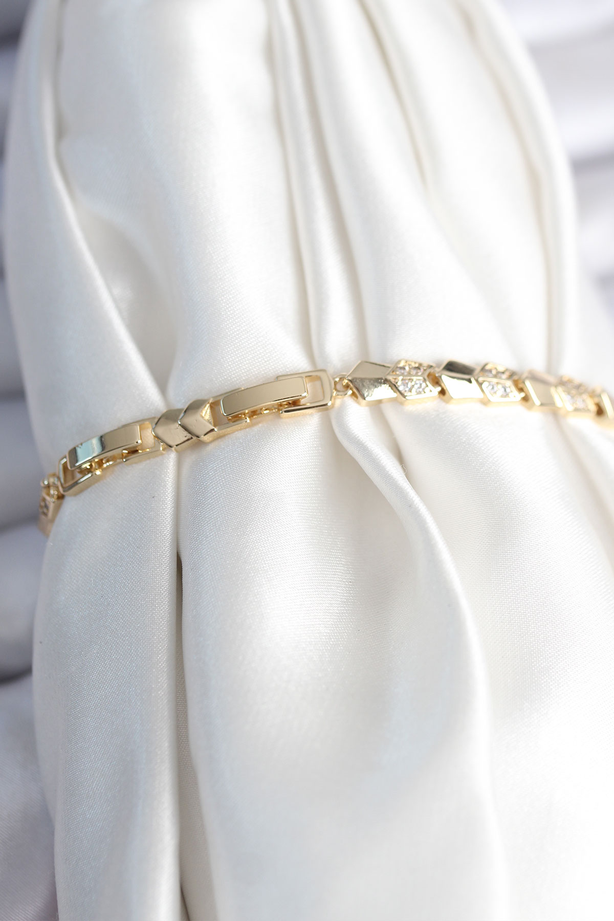Erb Pirinç Gold Renk Zirkon Taşlı Balık Sırtı Model Kadın Bileklik