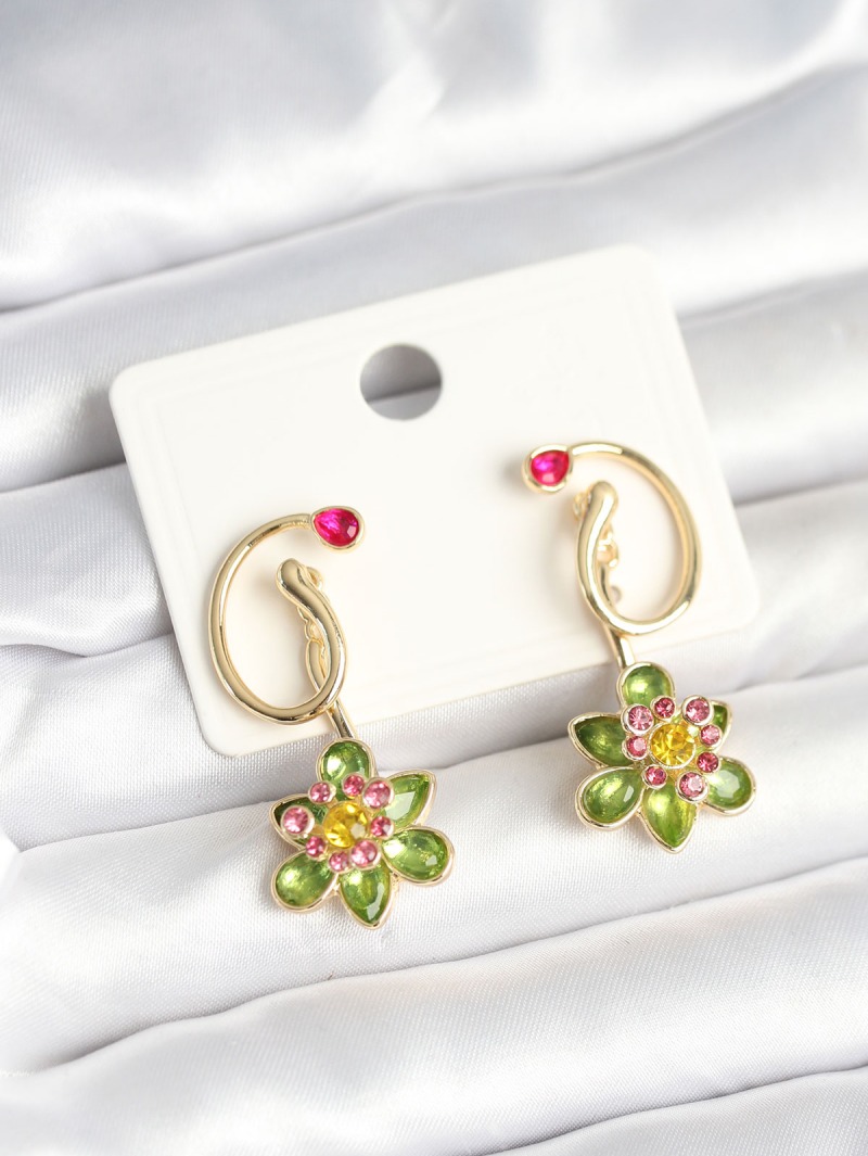 Erb Pirinç Gold Renk Zirkon Taşlı Çiçek Model Kadın Küpe