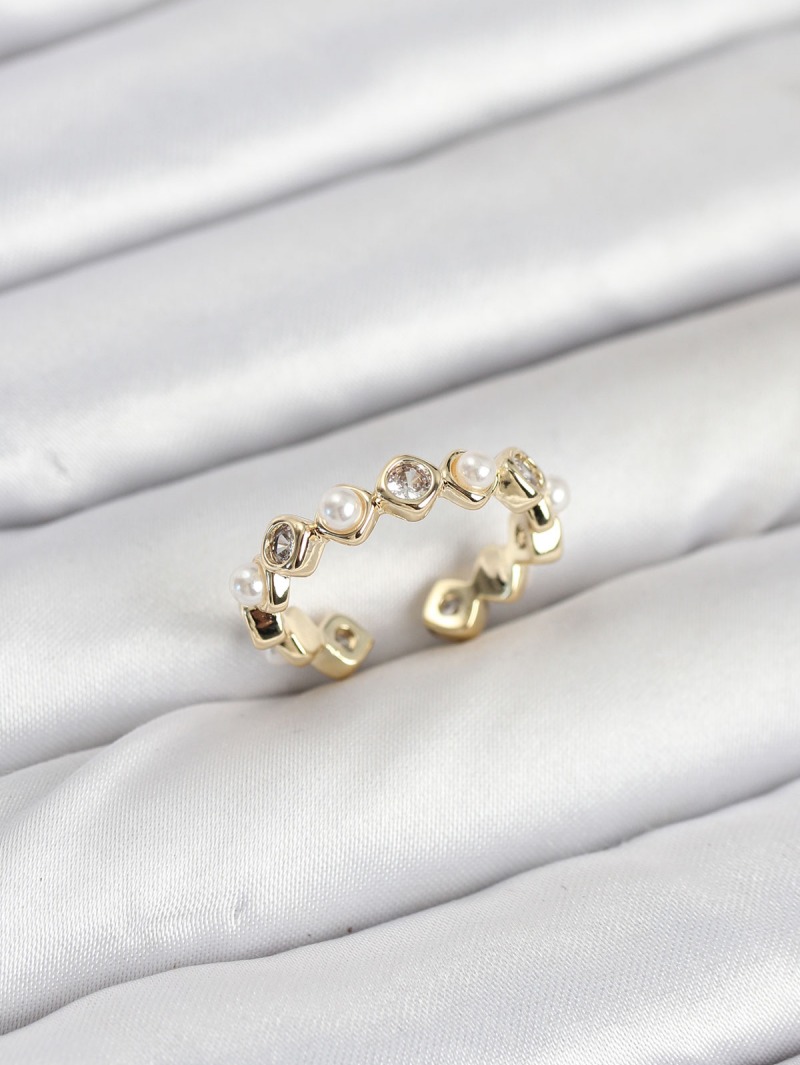 Erb Pirinç Gold Renk Zirkon Taşlı İncili Kadın Yüzük