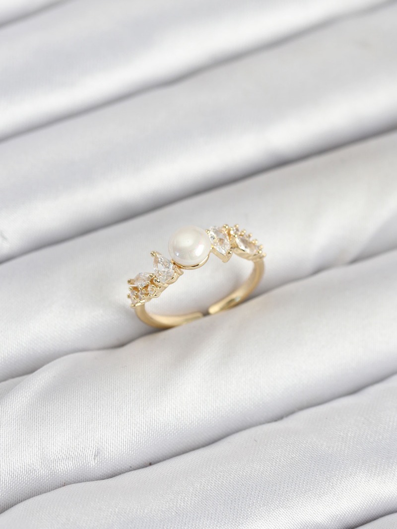 Erb Pirinç Gold Renk Zirkon Taşlı İncili Model Kadın Yüzük