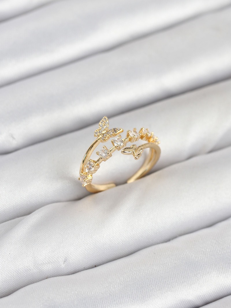 Erb Pirinç Gold Renk Zirkon Taşlı Kelebek Model Kadın Yüzük