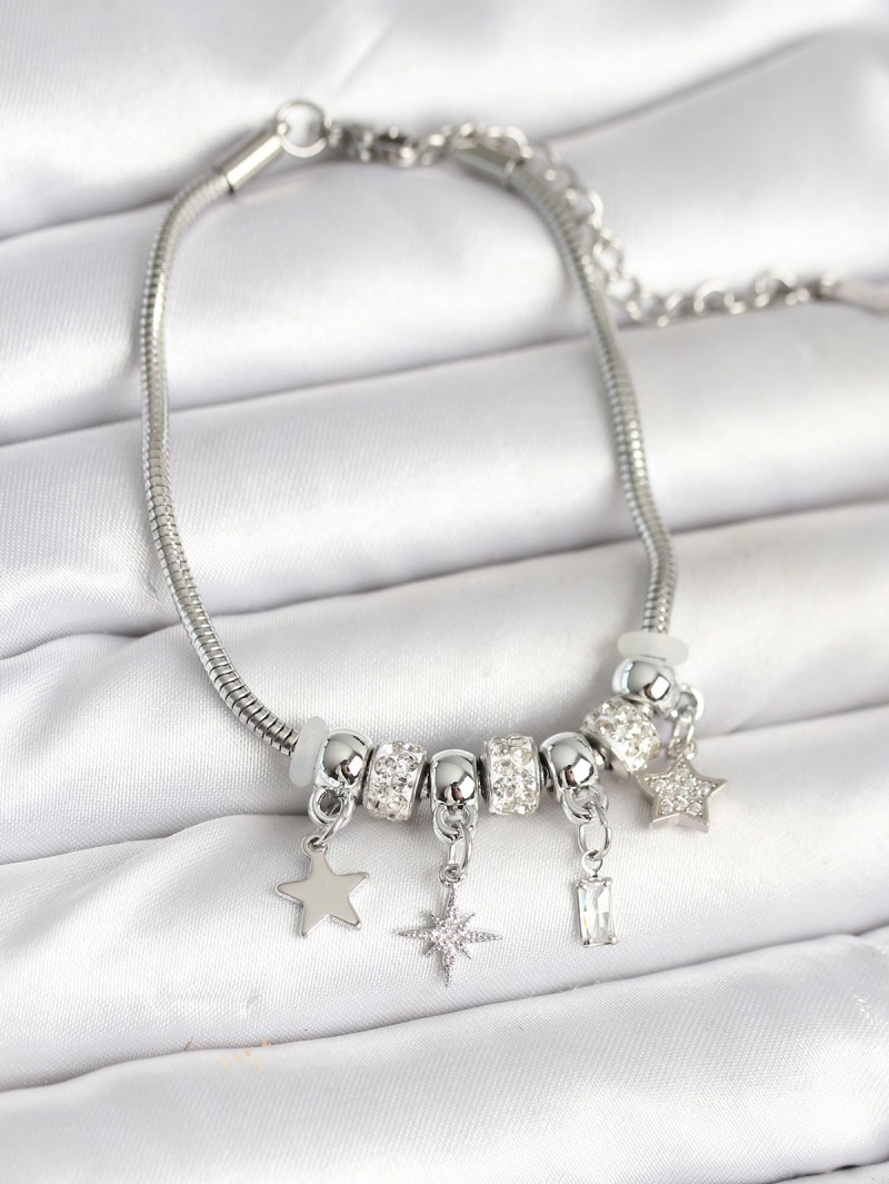 Erb Pirinç Gümüş Renk Kutup Yıldızı Charmlı Kadın Bileklik