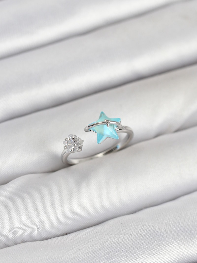 Erb Pirinç Gümüş Renk Mavi Yıldızlı Model Kadın Yüzük