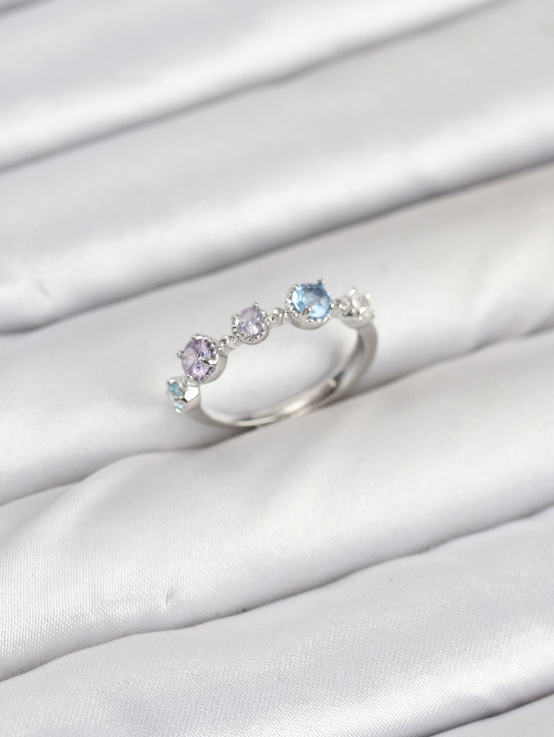 Erb Pirinç Gümüş Renk Renkli Zirkon Taşlı Kadın Yüzük