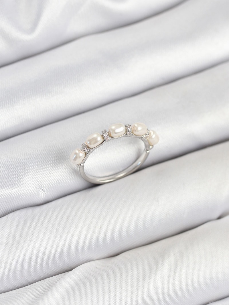 Erb Pirinç Gümüş Renk Sıralı İncili Kadın Yüzük