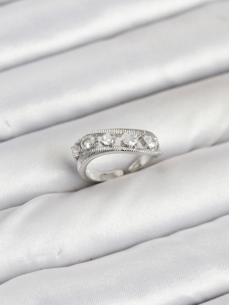 Erb Pirinç Gümüş Renk Zirkon Taşlı Kadın Yüzük