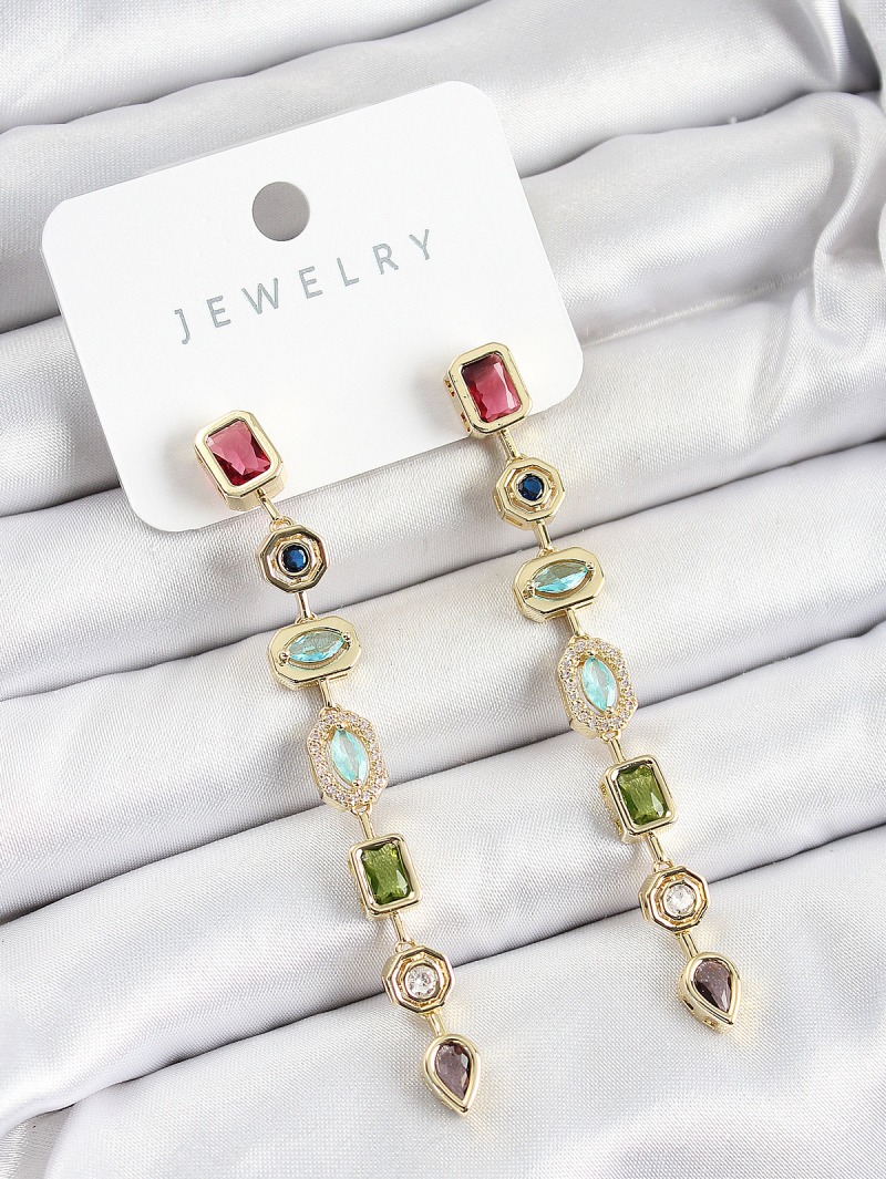 Erb Pirinç Renkli Zirkon Taşlı Sallantılı Model Gold Renk Kadın Küpe