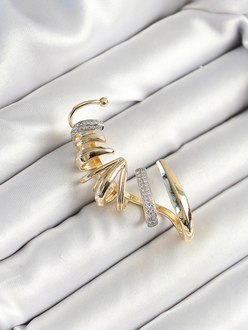 Erb Pirinç Zirkon Taş Kaplamalı Sarmal Figürlü Gold Renk Kadın Sağ Kıkırdak Küpe