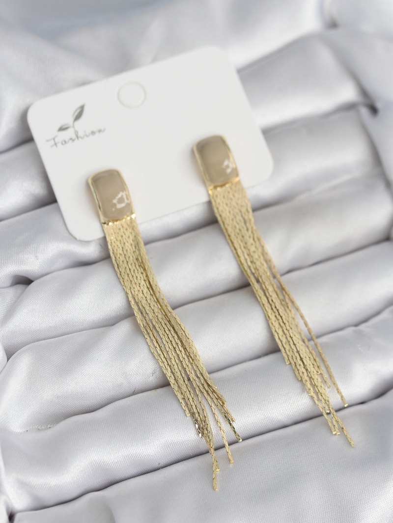 Erb Sallantılı Krem Mineli Gold Renk Kadın Küpe