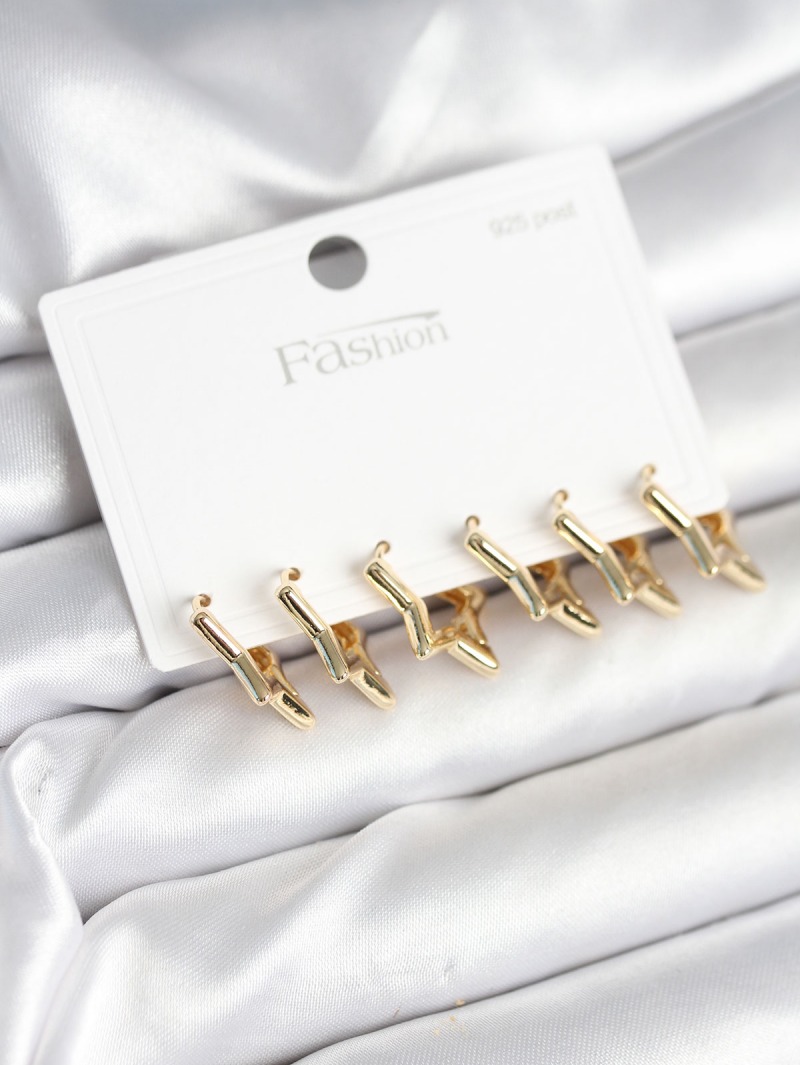 Erb Yıldız Model Gold Renk 925 Ayar Gümüş Çivili Kadın Küpe Seti