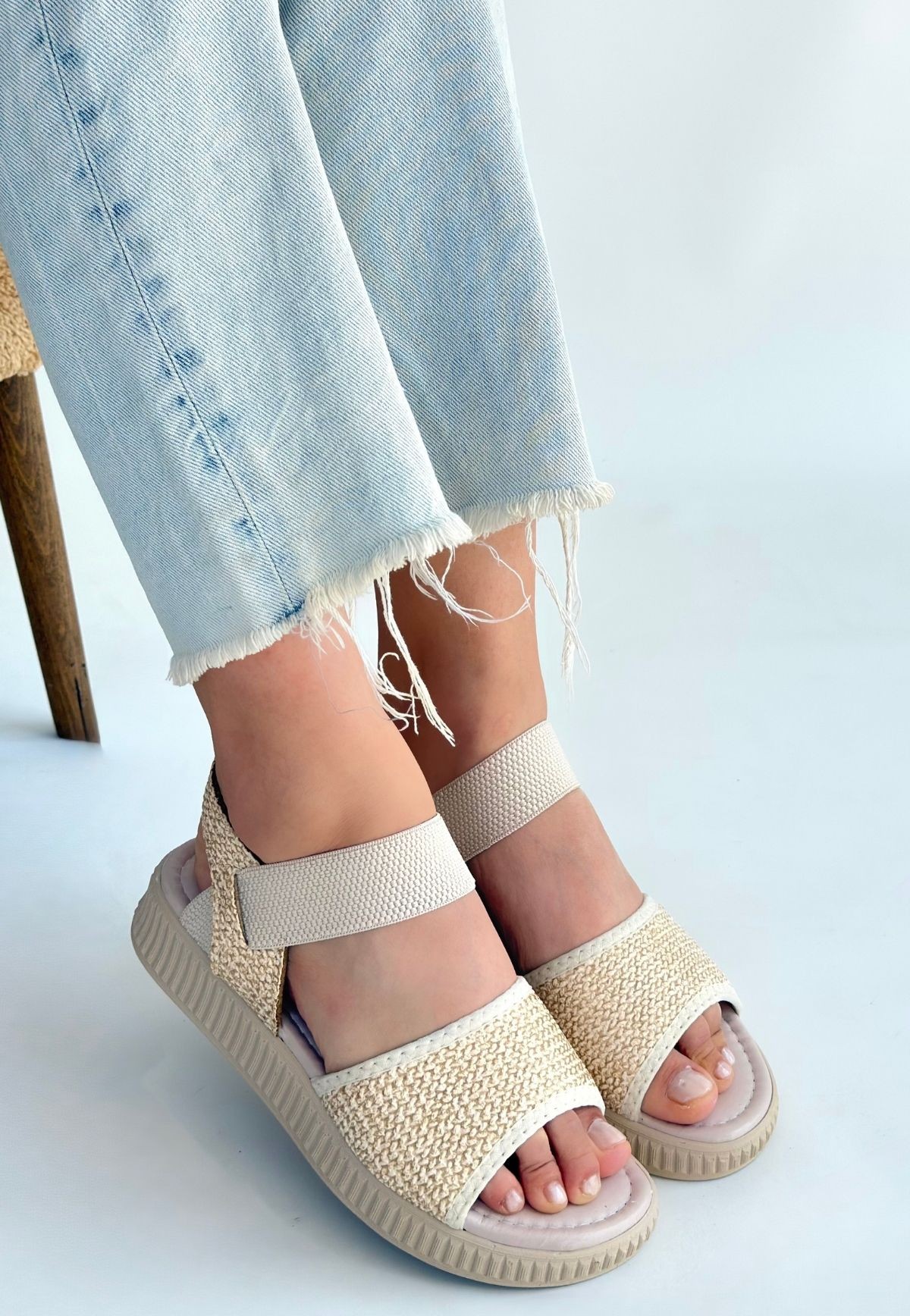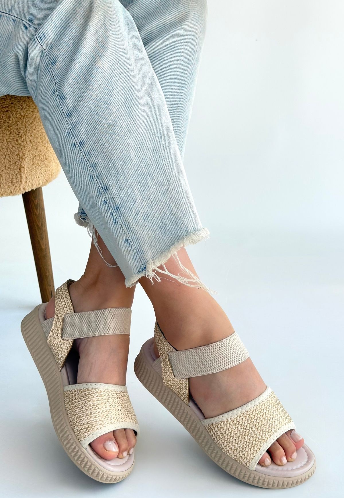 Jake Bej Hasır Cilt Sandalet