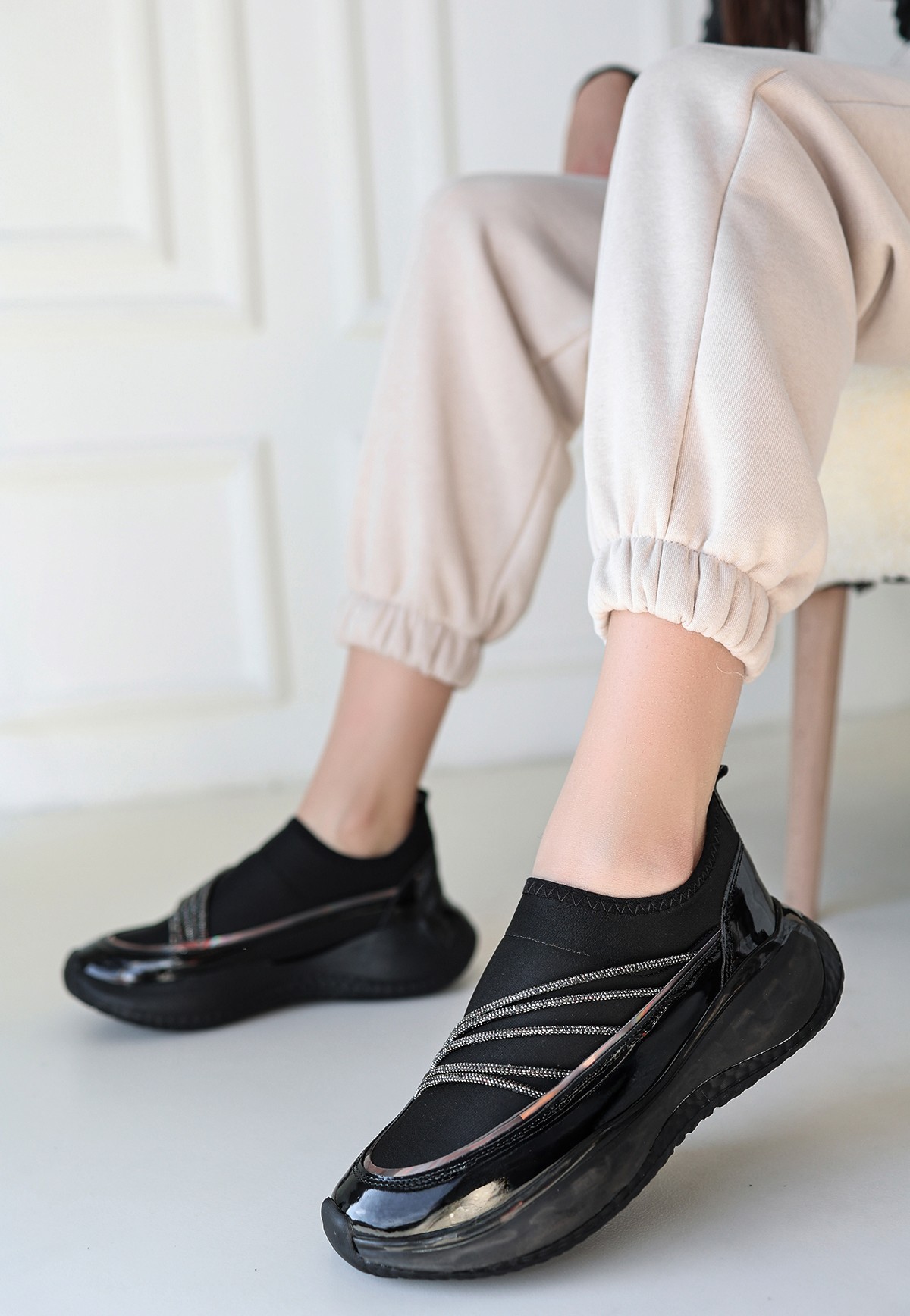 Keita Siyah Rugan Streç Detaylı Siyah Tabanlı Spor Ayakkabı