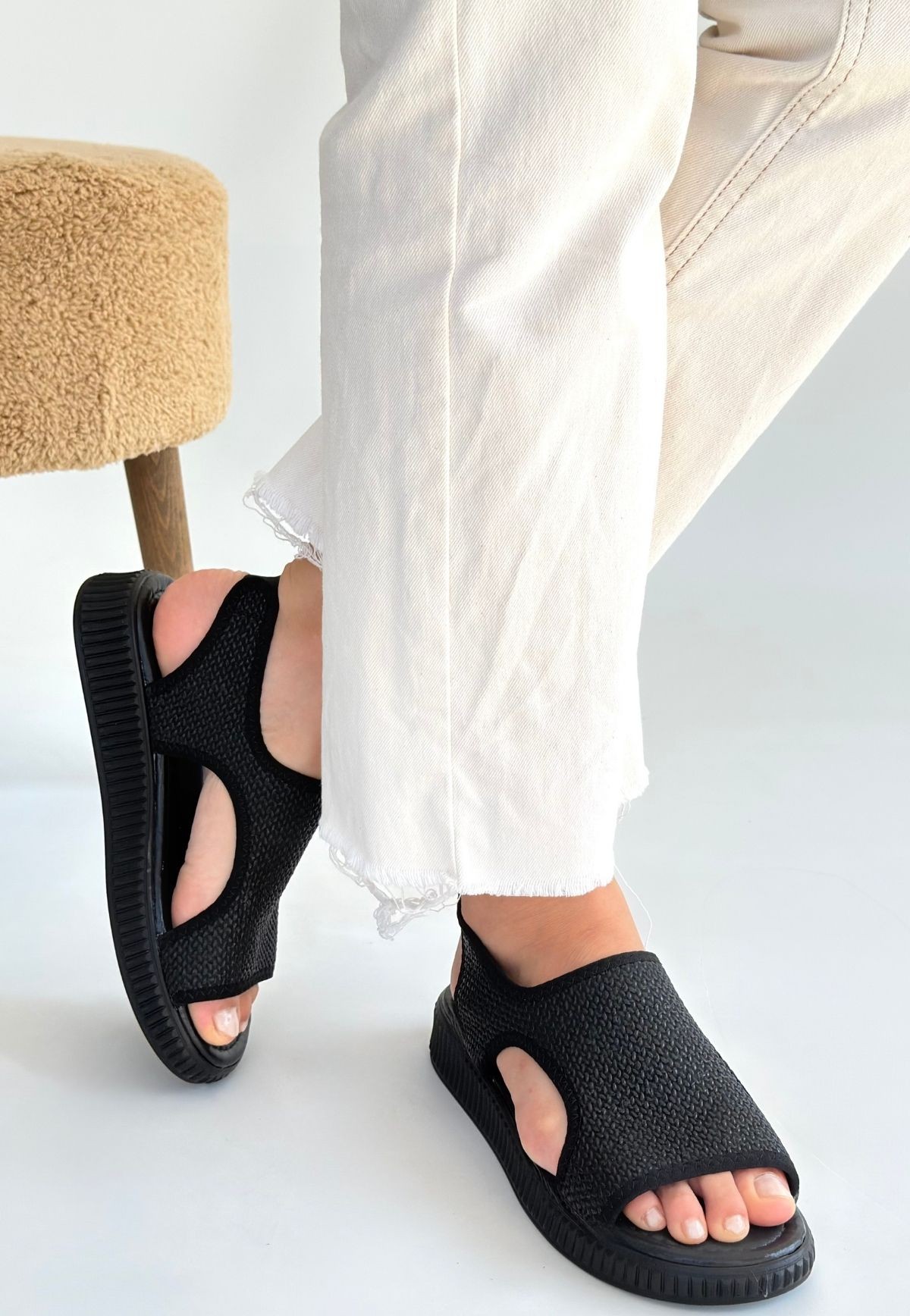 Wayi Siyah Hasır Cilt Sandalet